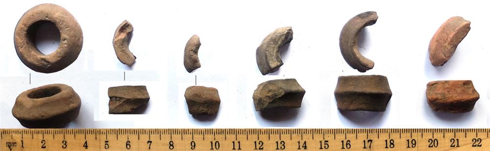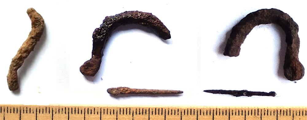 Ведущим типом керамики являлись грубые кухонные (сохранился нагар) горшки крупных размеров, украшенных декором в виде расчесов гребнем. Кроме того, встречена в незначительном количестве керамика лучшей выделки с более тонким тестом и заглаженной поверхностью, имеющая резкий перегиб/ребро на плечике. Вещевые находки представлены серией низких битрапецоидных пряслиц с широким отверстием и тремя обломками железных фибул, а также иглами, которые, возможно, также происходят от фибул.