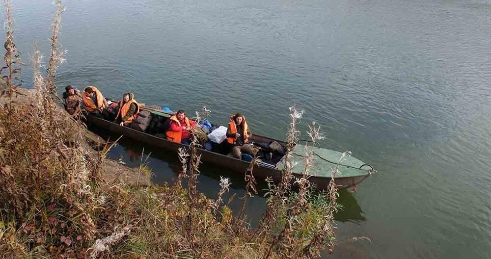 Выезд на бату по протоке р. Камчатки, лодку ведет А.В. Елистратов