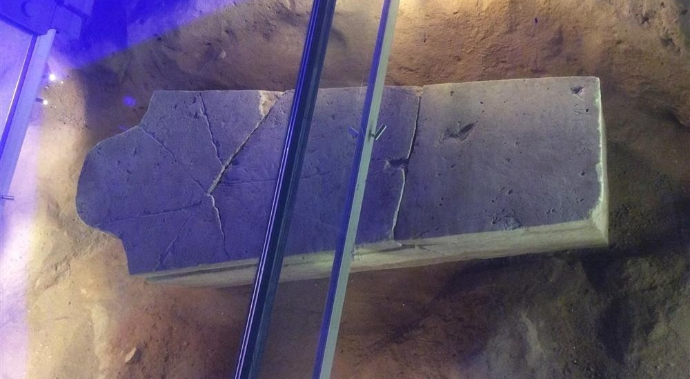 Слева: антропоморфный саркофаг XVI в. из некрополя Чудова монастыря. Фото 2020 г.