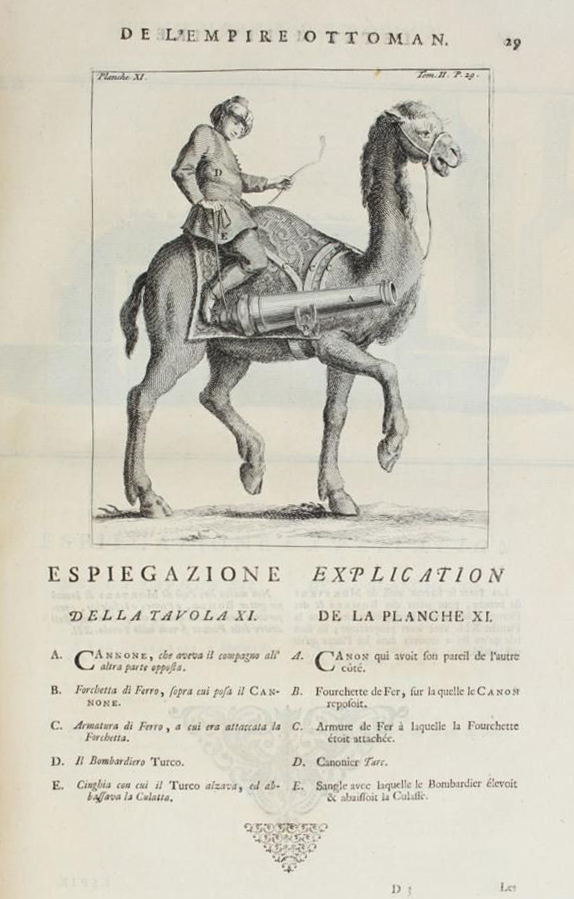 Гравюра из книги Луиджи Фернандо Марсильи, (изданной в Амстердаме в 1732 г.) русский перевод: «Военное состояние Оттоманския империи с ея приращением и упадком. = Военное состояние Оттоманской империи». Сочинено чрез графа де Марсильли члена Парижския королевския академии наук и Монпельерския также Лондонскаго королевскаго социэтета и основателя Болонскаго института.; Все украшено грыдорованными листами. [Перевел В.К.Тредиаковский]. печатано при Императорской Академии Наук. Санкт-Петербург, 1737 г.
