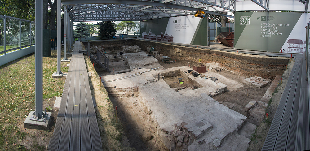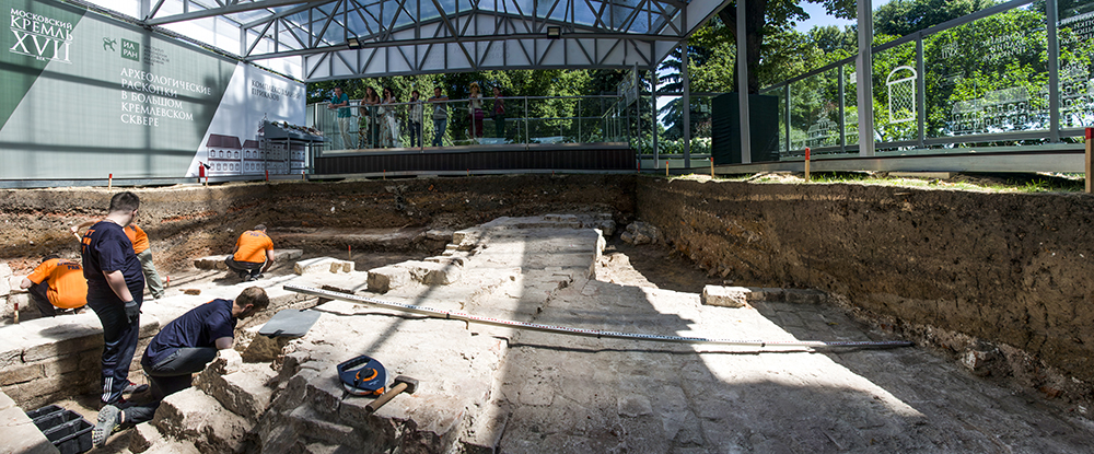 Раскопки в Большом Кремлёвском сквере, начатые Институтом археологии РАН в мае 2019 г. с целью изучения культурных напластований в самом центре Московского Кремля, рядом с Соборной площадью, были продолжены в июне-августе. Исследована двухметровая толща культурных напластований XVII–XVIII вв., ведётся расчистка горизонтов конца XVI – начала XVII в., эпохи Бориса Годунова и Смутного времени. Собрано около 1100 предметов, характеризующих жизнь Кремля XVII–XIX вв. Раскопки проводятся в открытом режиме, их уже осмотрели десятки тысяч посетителей Кремля, которые смогли собственными глазами увидеть открытые древности и наблюдать за работой археологов со смотровой площадки. Перекрытия, сооружённые над раскопом, дали возможность вести исследования в дождливые месяцы нынешнего лета с соблюдением требуемых методик тщательного документирования культурных слоев и сооружений.