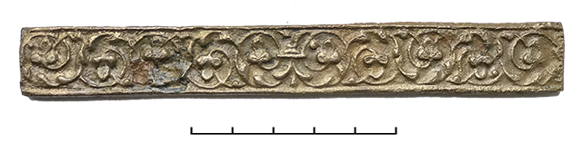 Снизу: бронзовая матрица для тиснения полосы растительного орнамента