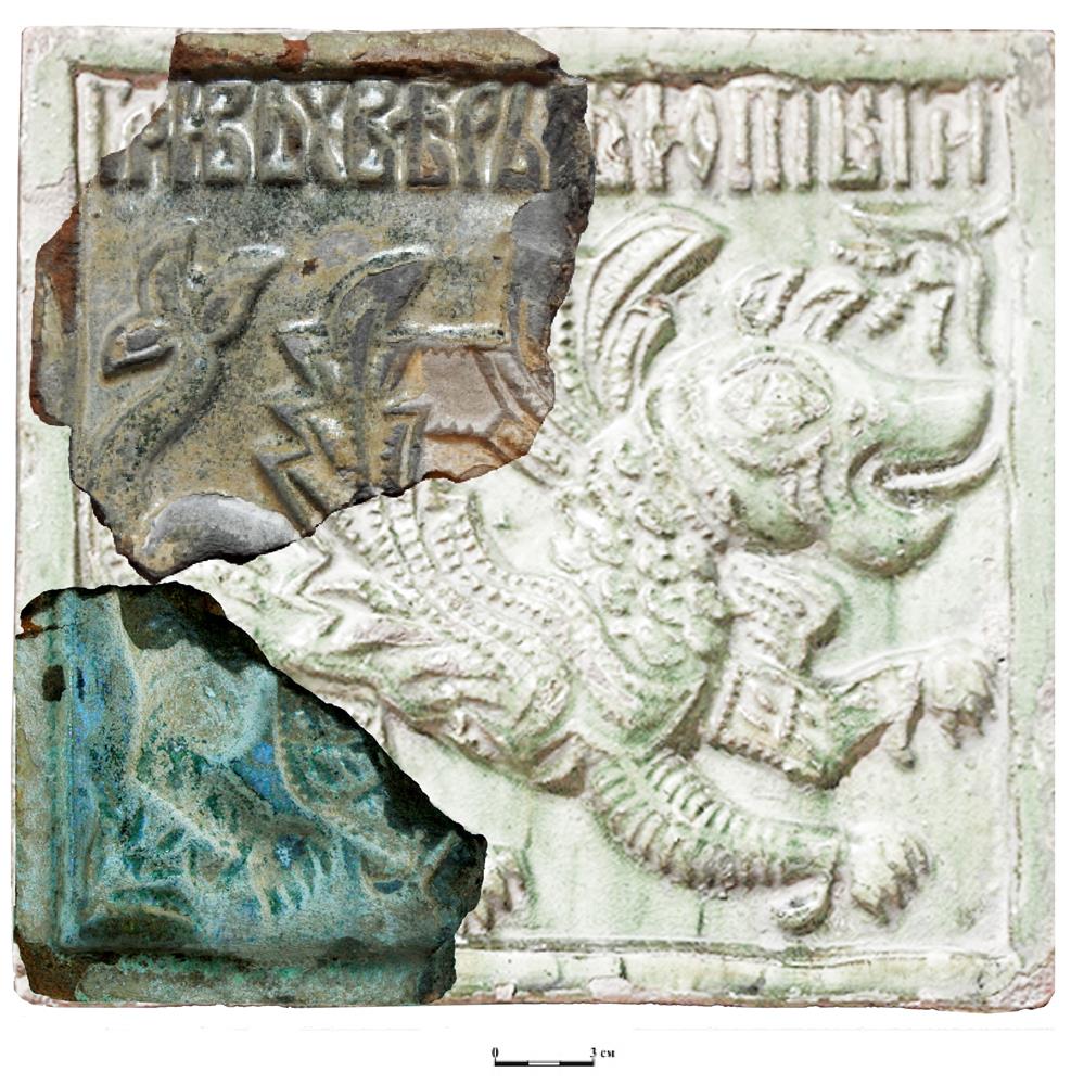 Находок, связанных с Успенским собором 1680-х гг., немного. Это небольшое количество рядового большемерного кирпича, несколько простейших деталей фасадного декора (тычковые валы, валики, элементы, имеющие характерные подтески для кладки криволинейных поверхностей), несколько фрагментов поливной черепицы. Отдельные фрагменты поливных изразцов XVII в. могли относиться к находившимся в соборе печам. Строительный горизонт, как и горизонт разборки здания, утрачен при поздних планировках площади.