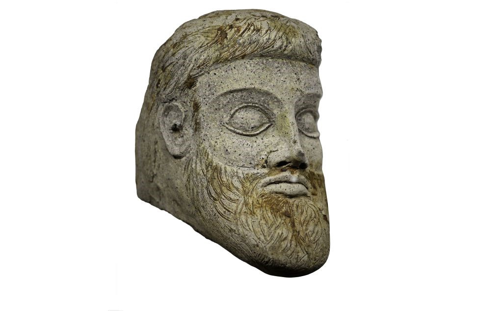 Одной из находок стало полое терракотовое изображение мужской головы в пропорциях взрослого человека. Как показали первичные исследования, голова (возможно, античного божества) была сделана из пористой глины методом оттиска с матрицы. Античный мастер гравировкой по сырой глине обозначил волосы и бороду, затем изделие прошло обжиг: такая технология широко применялась уже в VI в. до н.э., но обычно для изготовления небольших тонкостенных статуэток. Любопытно, что скульптура объединила в себе художественные приёмы двух или трёх изобразительных школ: верхняя часть лица выполнена в архаической традиции (резкие переходы, крупные глаза), а изображение носа, губ и бороды — в восточных канонах. Это позволило предположить, что скульптура была изготовлена в небольшой мастерской одного из греческих городов Малой Азии, подражавшей известным центрам и передававшей портретное сходство с исторической личностью. Первоначально скульптура датировалась V в. до н. э. — эпохой греко-персидских войн и периодом расцвета классической греческой культуры.
