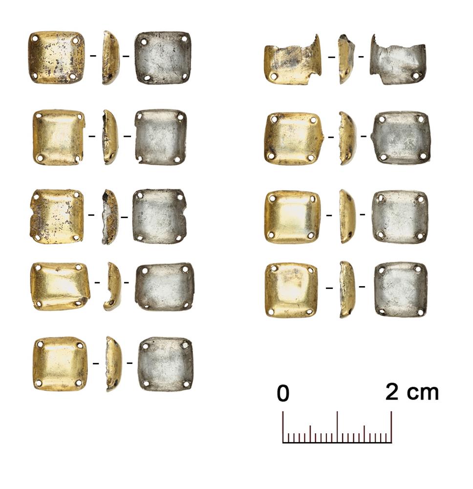 В женском захоронении 30 в области груди были обнаружены фрагменты золотной ленты с орнаментом «зигзаг». На фрагментах ленты сохранились следы швов. Найденные фрагменты являются остатками декоративного оформления одежды, возможно, окантовкой края рукава (манжета?).
