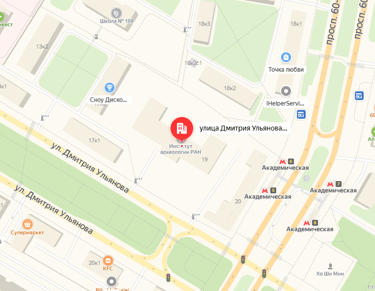 The conference will be held at the Institute of Archaeology of the Russian Academy of Sciences: 19, Dmitriy Ulyanov Street.